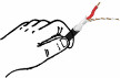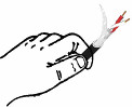 取适当长度的音箱线一根距一端3厘米除剥去外部护套层(图25)。距每芯顶端0.5厘米处去除护套露出铜芯,再将每芯分别拧扎结实(图26)。