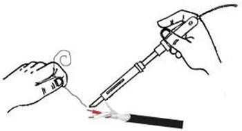 用电烙铁沾焊锡涂抹在线材的铜质两芯和屏蔽层,屏蔽层涂抹的焊锡与两芯一样即可(图4)。