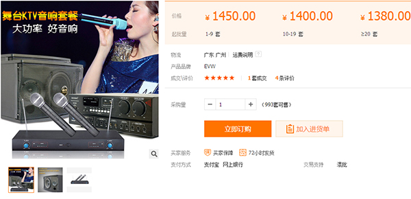 【性价比之王】这套专业KTV音响套装正在阿里巴巴店铺火速热销中,只需要1450元,就能获得这套性价比很高的KTV音响设备,能满足日常娱乐唱歌需要,真正的物超所值。若这套KTV音响没能满足您的高品质要求,没关系,摩登7音响厂家专注音响生产14年,以我们丰富的产品线,相信总有一款KTV音响能满足您的高要求,请联系在线客服,您将免费获得一套优质的专业音响系统解决方案。