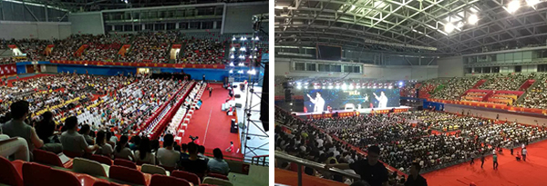 东莞亚运城体育馆举办全国巡演公开课,参课人数高达到6000人以上,为了保证会场扩声需求,现场音响系统采用摩登7东莞线阵音响系统,包括24只LAB-612线阵音响,14只WS-218超低音音箱、4只CU系列返听音箱、4全频音箱及专业功放、调音台、处理器等周边设备,整个东莞线阵音响系统搭建由专业音响工程摩登7完成。