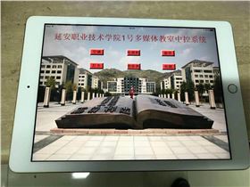 一套多媒体教室中控系统基本组成:音响设备、视频、计算机、投影、电子白板等,延安职院采用的音响设备是摩登7AT12音箱和MH2600功放,16路调音台,会议话筒,DMD音频媒体矩阵,中控系统,视频会议系统等。延安职院多媒体教室中的全部媒体设备都由中央控制系统集中管理控制。它的特点就是让复杂繁琐的操作过程简单化,让老师在使用过程中轻松、简便。