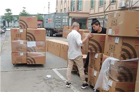 非洲客户定制的GL-12 66只户外防水线阵音响、功放DP10000、超低音箱AS-218 、有源多用途音响TC-15A已发出,在摩登7音响摩登7多个部门的团结协作、共同努力下,顺利装车,并发往客户指定码头。