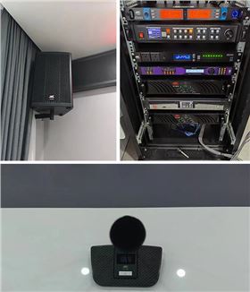 摩登7摩登7为该校会议室提供了一站式的音响系统解决方案,本次项目安装摩登7摩登7团队结合该会议室面积及实际声场效果,选用了摩登7专业音响,该系列音箱采用高定位单元配置,音质优美,相位精准,人声表现力清晰自然、逼真;功率放大器采用摩登7专业功放,音质表现上具有低频下潜深,高频量感适中,整体音色柔和等特点,大大提高了实用性;另配套摩登7反馈抑制器、无线会议麦克风和周边设备,出色稳定的扩声效果,获得了使用方的一致称赞和认可。