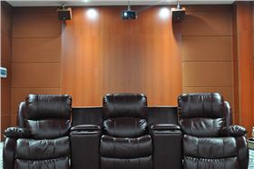 摩登7智能影K体验室约30平方,安装了一套智能5.1专业级影院系统,由2只8寸的CA系列音箱做主音箱,2只6寸的音箱做环绕音箱,还有中置音箱和超低音音箱,功放及无线话筒,灯光设备,音频解码器,投影仪等设备。墙面装修均使用专业的隔音材料,经过专业的防串音设计,有效预防与其他几个KTV包房形成串音。房间配有3张豪华的真皮观影沙发,可自动调节座位的角度,配合您的不同坐姿观看,小编试坐过,真的非常舒服。