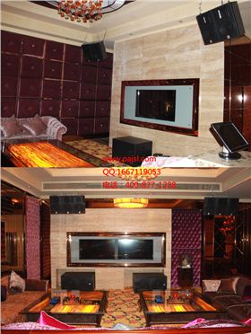 整个设计过程均由专业室内设计摩登7与我们共同去进行结合设计,在双方多次磨合后最终酝酿出专业与艺术的结晶。音响方面,我们采用AQ-12二分频全频音箱,AQ-12是JSL品牌中主打高端KTV音响的专用系列,在室内中、小型主扩声系统和扩声系统的辅助补声方面都有出色的表现。高音单元采用1.75"特殊高分子振膜驱动器,高频通透明亮,与之配合的是一只 3"音圈的12"优质低音单元,具有丰富的力度和弹性。内置采用进口元件的精密分频音质设计注重中频部分的饱和度、和亲和力、以达到喉感表现力,高声压的中段频率,使无线话筒演唱轻松自如!