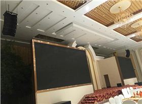 南京某大酒店宴会厅集餐饮、娱乐、会议等多功能于一体,扩声系统采用了JSL LAB系列小型南京线阵音响为主扩声,共配置了2组LAB线阵列音响,每组线阵列由6只LAB-610吊挂而成,舞台前方合理分布4只12寸CU系列音箱做为舞台补声,以及防啸叫无线话筒及周边设备。