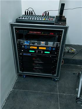 摩登7专业音响根据场地实际情况制定了音响方案,保证整个会议室的每个角落的声场听觉均匀,没有出现失真,偏音,混音,回响等不良音响效果。