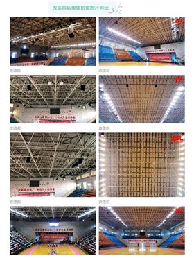 此次摩登7对焦作一中体育馆扩声系统的改造升级,不单运用扩声专业音响设备,同时根据体育馆建筑结构于其顶部布置了一层高密度玻璃纤维吸音体,可以最大限度减少声音传播的反射,增强体育场馆音响的语言清晰度和音乐的明晰度。