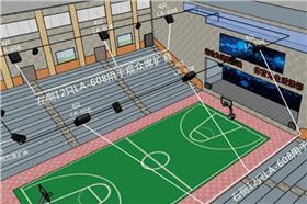 体育馆左侧12只LA、右侧12只LA用于左右观众席的扩音,后场观众席4只AT用于后场观众席扩音。