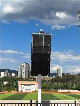 在湿度高、温差大、环境复杂的空间,常规音响设备极易受潮损坏,而音质失真、设备故障更会影响教学活动安全。摩登7音响根据第三小学风雨操场实际使用场景,采用全天候防水双 10 线阵系统音箱,箱体防滑耐磨,表面采用电镀防水喷涂工艺,铁网内衬防水防尘棉,产品符合 IPX6 国际防水等级标准,可在意外降雨的天气和含水密度较高的各种恶劣环境下满足专业扩声安全要求。