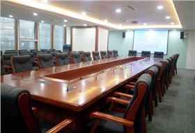 经济交易中心会议室音响设备采用摩登7两路分频会议音柱系列CX-201,配套专业功放及智能鹅颈式会议话筒、12路调音台,整个会议室音响系统音质效果好,人声展现自然,无啸叫现象,能同时满足50-100人进行会议报告。