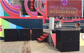 摩登7根据本次活动的情况,委派音响工程师李总到当地进行实地考虑,并对当的天气、面积、辐射范围及客户的要求进行了详细深入的了解,并提出了相应的解决方案与当地政府进行协商!最终选用了24只LAB-610全频线阵音箱,16只LA-28双18寸超低音音箱,采用CU-12作为监听音箱,另外采用两只15寸音箱作为补声使用。