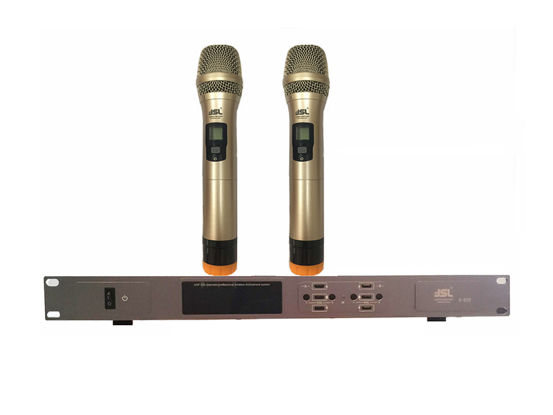 产品介绍:系统采用UHF频段PLL数位锁定双频道接收,200个频道可随意切换不受干扰,不会串频,双液晶显示,每个频道最多可预定制200个频点,具有“音码及杂讯锁定”静音控制。