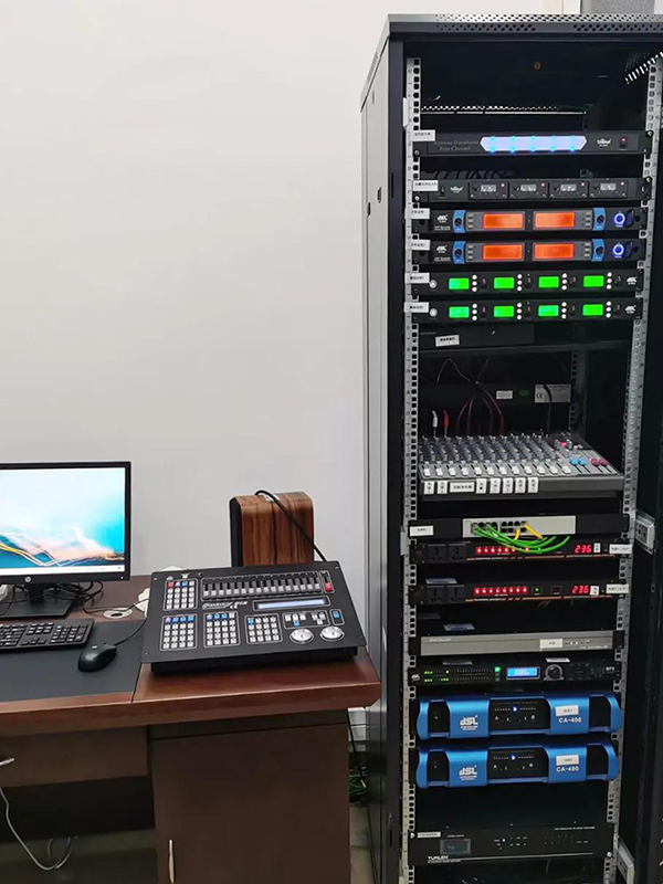 为满足报告厅课程、会议、培训等多功能使用需求,这套音响系统还包括AU系列12寸返听、G系列手持话筒、U系列无线会议、ME调音台、DF反馈处理器和XCA处理器等产品,教室四周环绕辅助补声音效均匀分布全场,配合先进合理的系统设计保证了音质的优化。摩登7团队从设计到施工始终看重系统设计的科学性、准确性和先进性,满足功能要求的系统性和实用性,安装后多次调试检验,以保证报告厅音响系统正常运行使用。