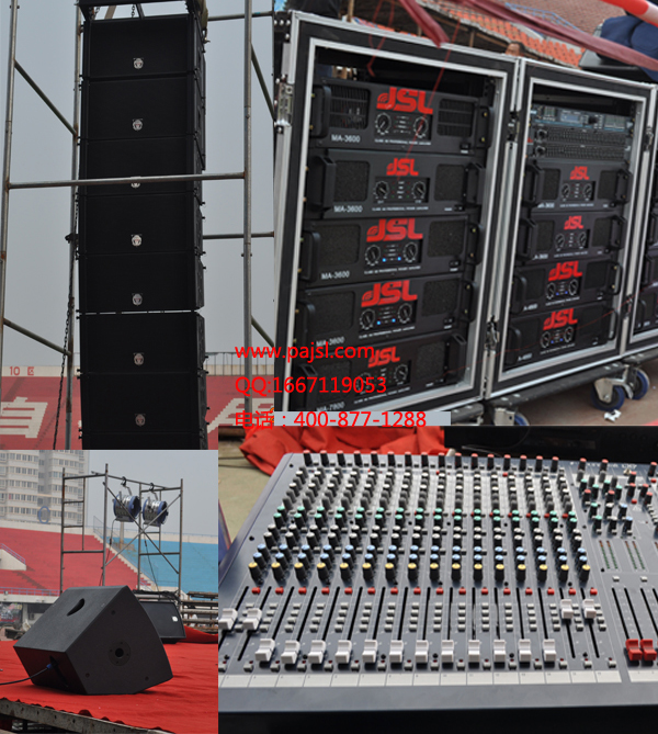 歌伴舞《欢天喜地》更是将整场晚会带入了高潮,欢快的歌声诠释着对祖国母亲无比热爱,表达着人逢盛世的无比喜悦,本次文艺演出全部采用东莞摩登7企业的EVW专业线阵演出音响系统!本系统是采用了新型材的新产品,活动中一共使用了26只音箱,其中线阵全频音箱双十寸16只,线阵低音4只双十二的,4只单15寸的返听音箱,另外加装了2只双十八的超低音补低频,线阵音箱内致2只十寸低音单元,2个5.25密闭中音,2个2寸压缩驱动器,系统采用先进的分歧影射技术,使中高频同步输出均同等声压,垂直指向为12度,声音传输距离更远,声箱之间的声干涉减少到最小。