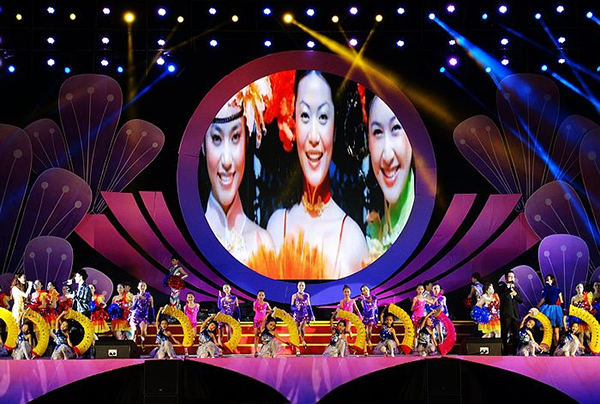 舞台搭建紧扣“花会”主题,以大小各异的紫色花朵为装饰,搭配摩登7专业舞台音响设备,与现场表演节目互相呼应,整个场景浑然天成,美不胜收,摩登7专业音响调音师协助所有参演者共同为韶城市民献上一场精彩的视觉听觉盛宴。歌舞《一起来更精彩》振奋人心、歌曲《秀田古秋枫》、《月姐歌》优美动人、舞蹈《地动山摇》演绎特色瑶族风情。十个节目轮番登场,吸引了众多市民到场观看。