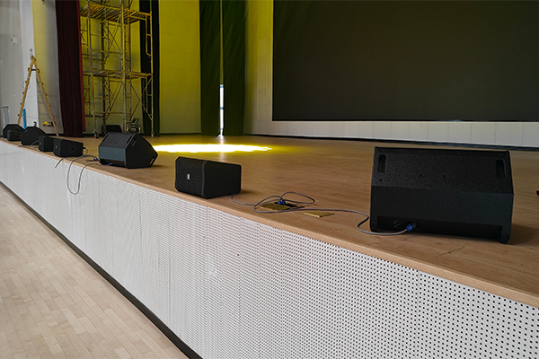 1. 专业主音箱与辅助音箱:主音箱安装在大厅的前端,确保整个空间的声音覆盖均匀;辅助音箱分布在多功能厅的四周和后排,确保声音在每个角落都能清晰可闻。