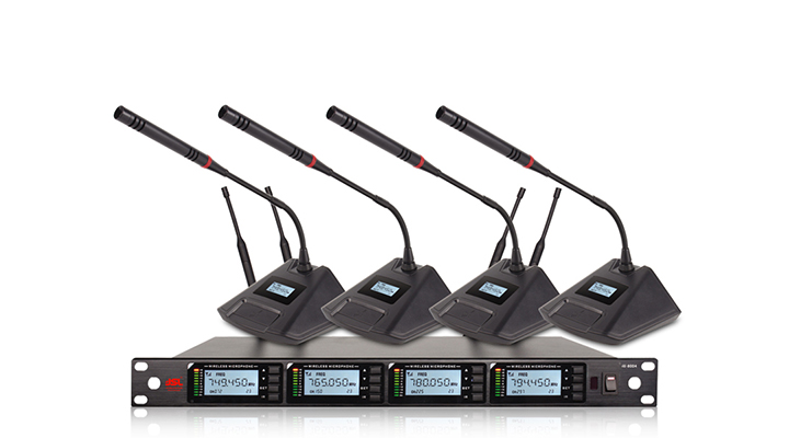 一拖四会议话筒,采用先进的合成锁相环、红外线对频技术,它的优点是稳定性高,频率响应宽,动态范围大,可任意改变频率等,带有红外技术的