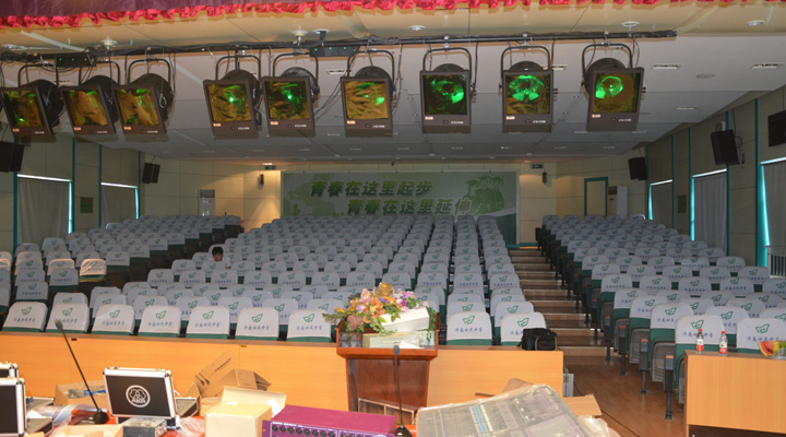 学校礼堂采用摩登7提供专业系统,AT系列音响清晰、嘹亮。MH系列功放失真度低,频率响应宽广;CM-1002无线手持麦克风外观大气时尚,信号稳定,具备先进的一键式"SCAN"自动频道搜索功能,能自动快速选取无干扰的频道,使用极为便捷;专业录音麦克风,频率响应宽,失真小,动态范围大,专业合唱完美适用;整套系统所实现的效果将会展现在校园活动及日常教学的方方面面,为回民中学的广大师生带来很好的音频效果体验。