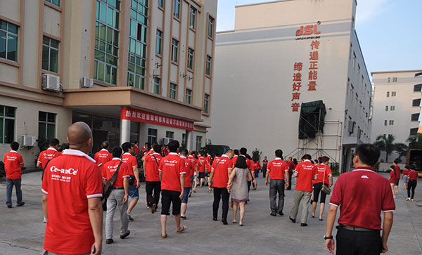 一踏进摩登7厂部园区,映入眼帘的是一串六件线阵音响,其震撼有动感的音乐足以令人绕梁三日,在此澎湃的音乐背景下摩登7音响员工与108位慧聪商客进行了合影。