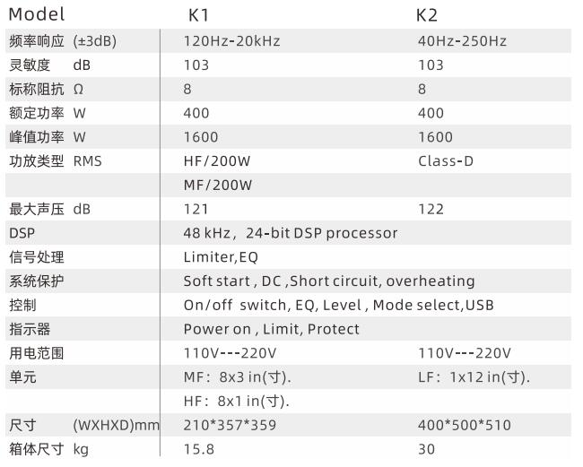 K系列做为今年摩登7新推出产品,其特点是重量轻、体积小、效率高内置精准调试的DSP系列功放,确保系统在安全稳定的运行状态下输出完美音效。