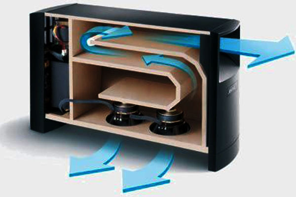 我们知道,如果要听到20Hz的低频声音,房间的长度要达到17米左右,就算是1/2波长最少也要8米,一般家庭很少有这样的听音环境。这时就需要一款能解决这个问题的音箱——迷宫式音箱。